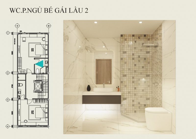 Phòng ngủ bé gái được thiết kế vệ sinh khép kín.