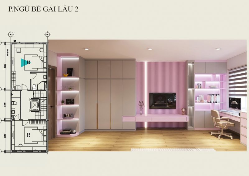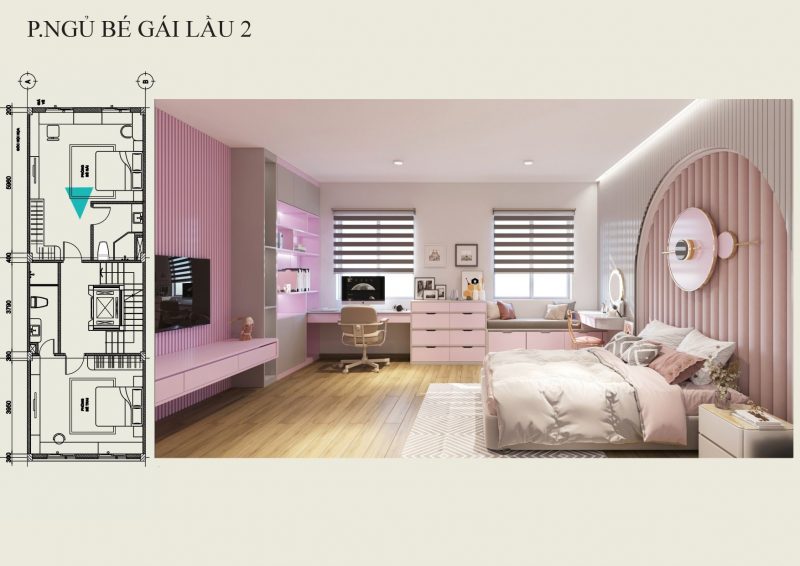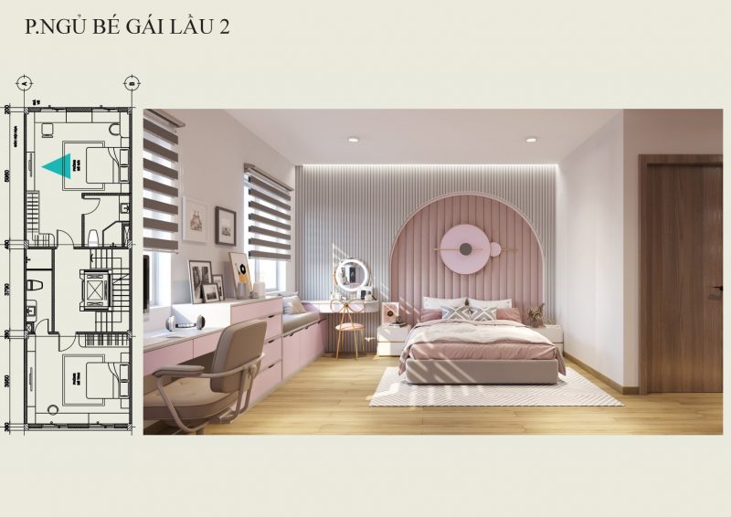 Phòng ngủ bé gái được thiết kế gam màu hồng dễ thương.