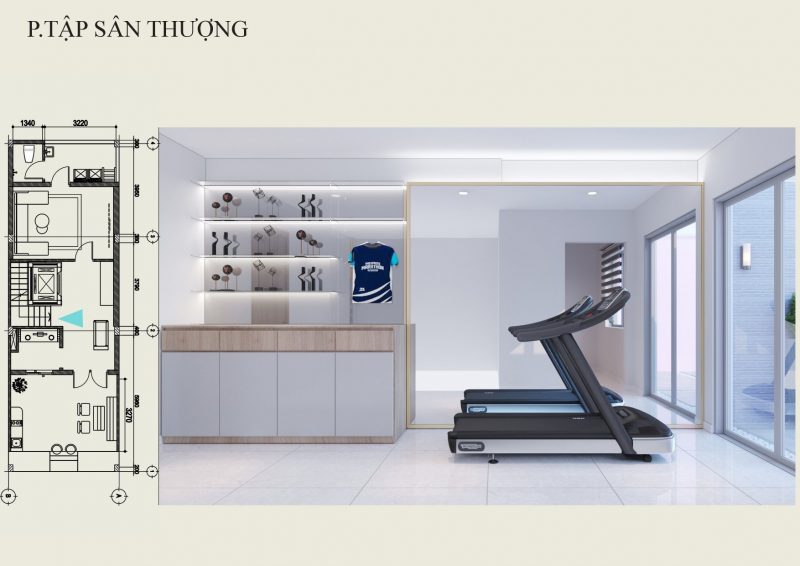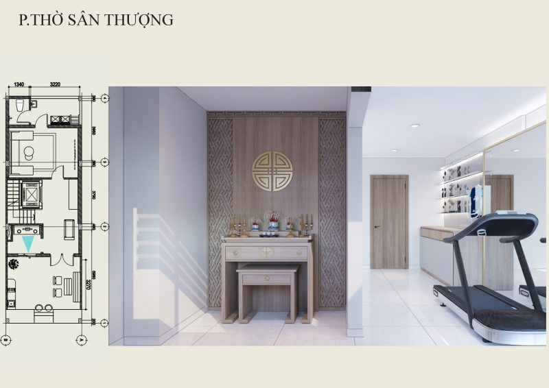 Phòng thờ được thiết kế đặt trên sân thượng, bên cạnh là khu vực tập thể thao.